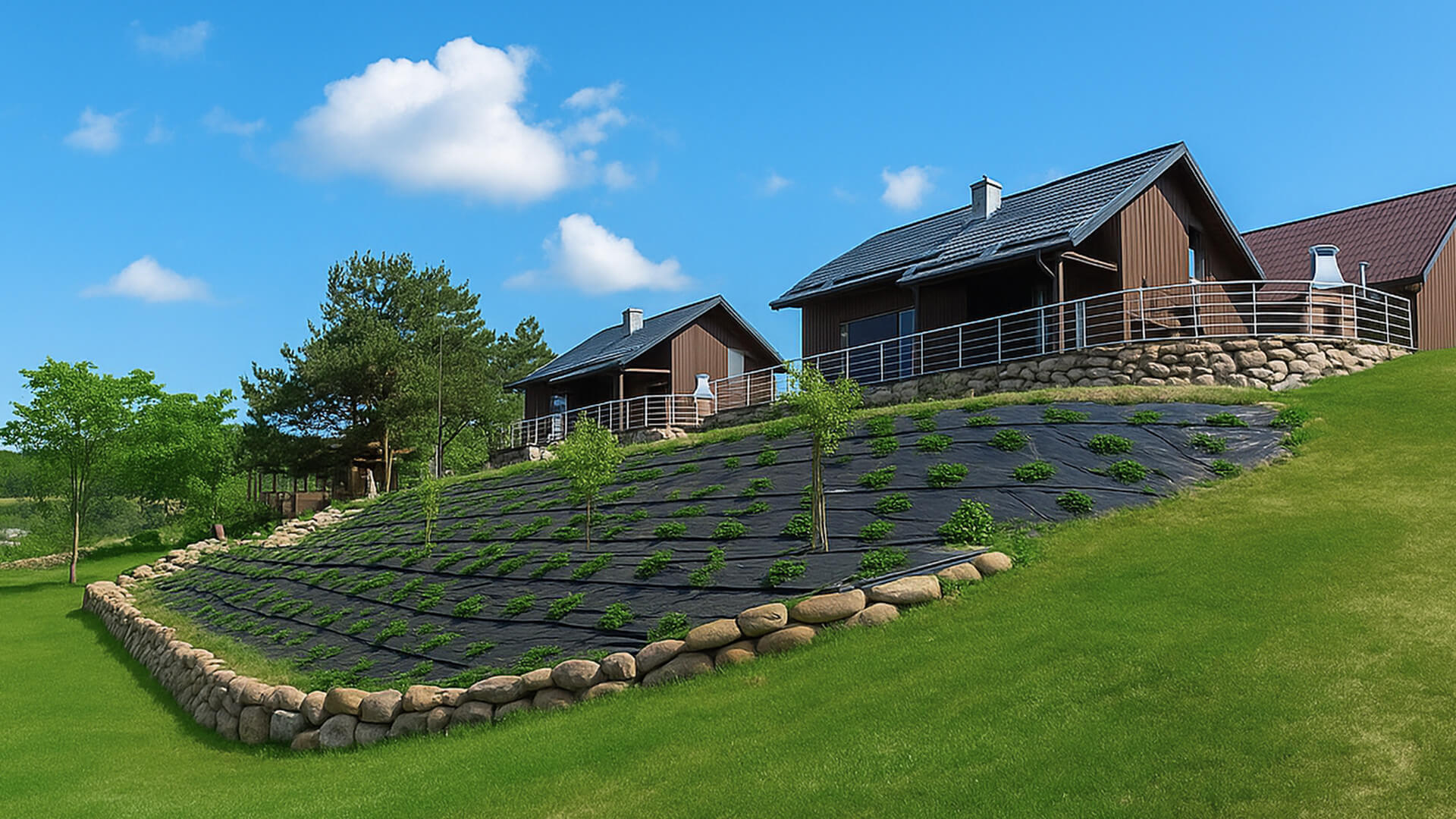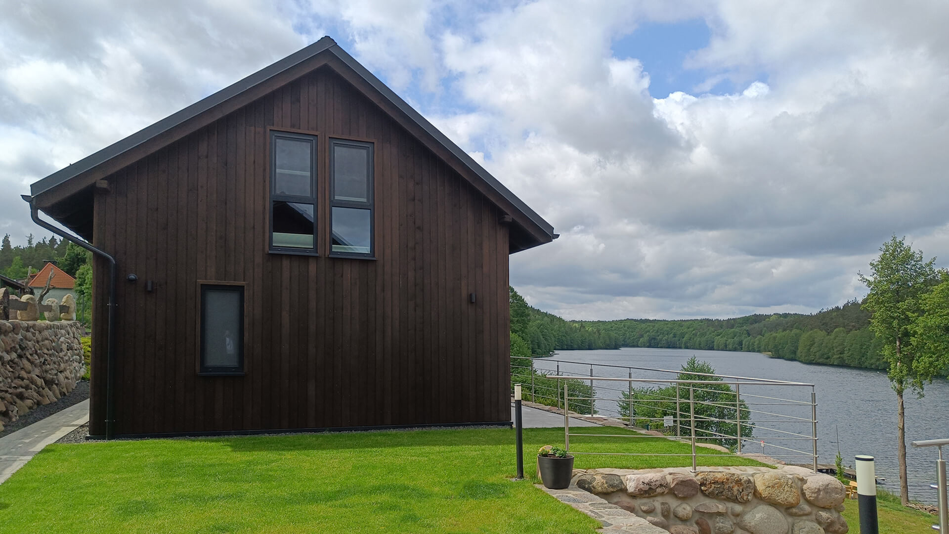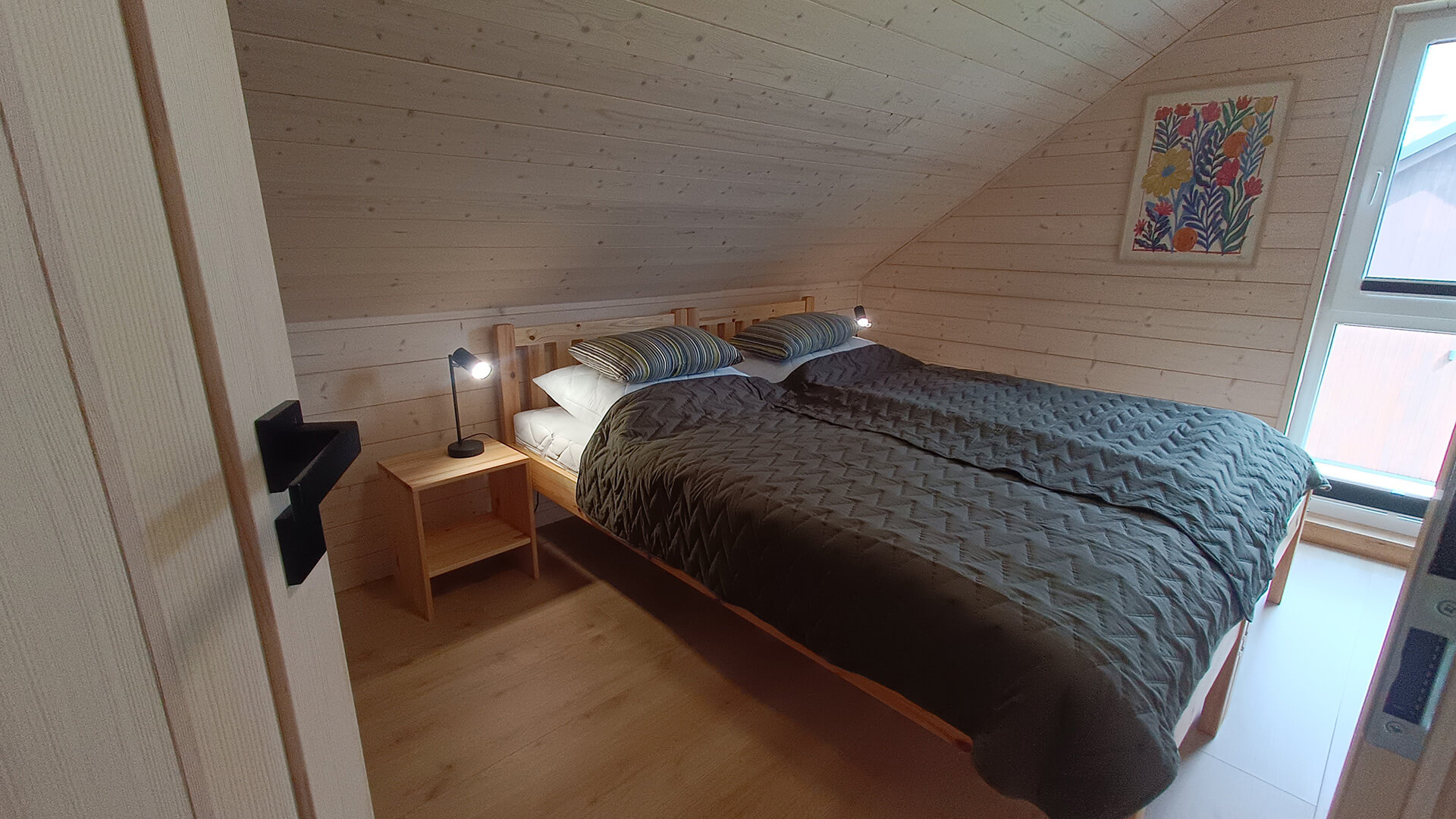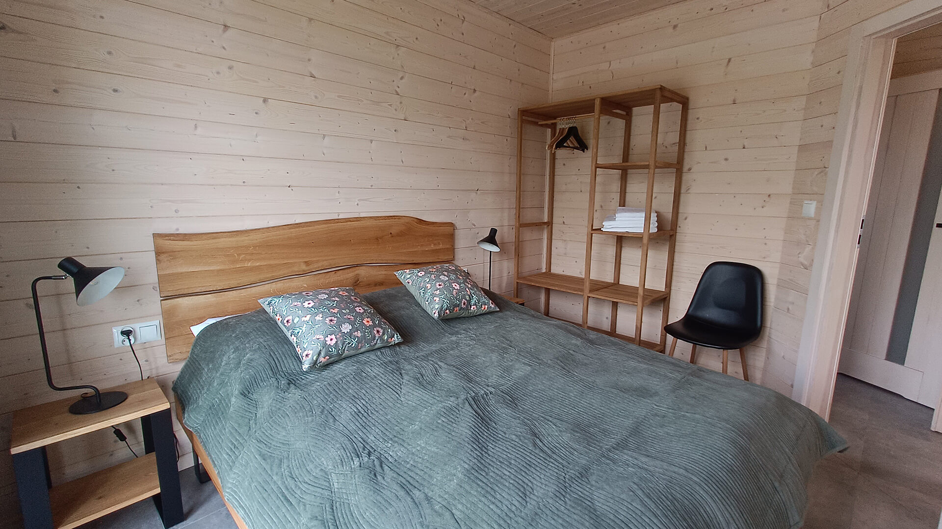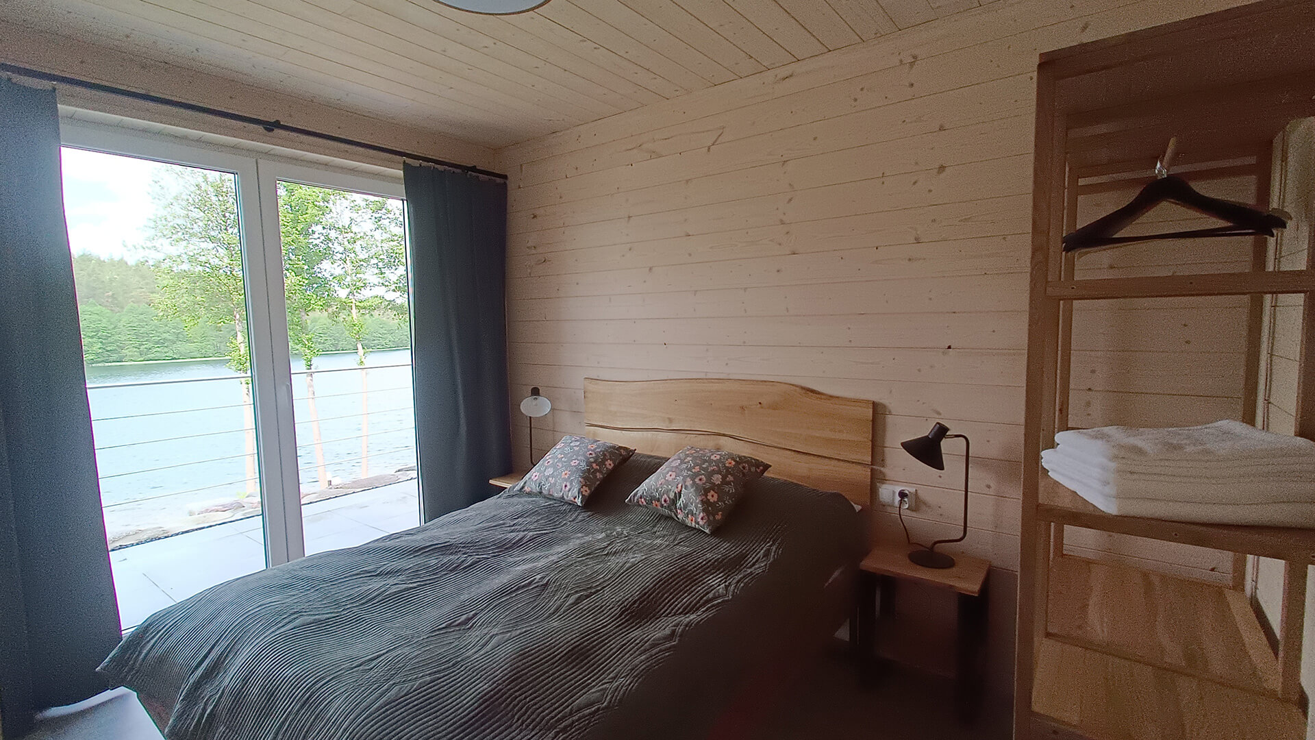 Nasze nowoczesne domki nad jeziorem zostały zaprojektowane z myślą o komforcie i estetyce. Każdy z nich oferuje przemyślane, funkcjonalne wnętrze, a ich układ powtarza się w lustrzanym odbiciu – dzięki temu całość zachowuje spójny charakter.