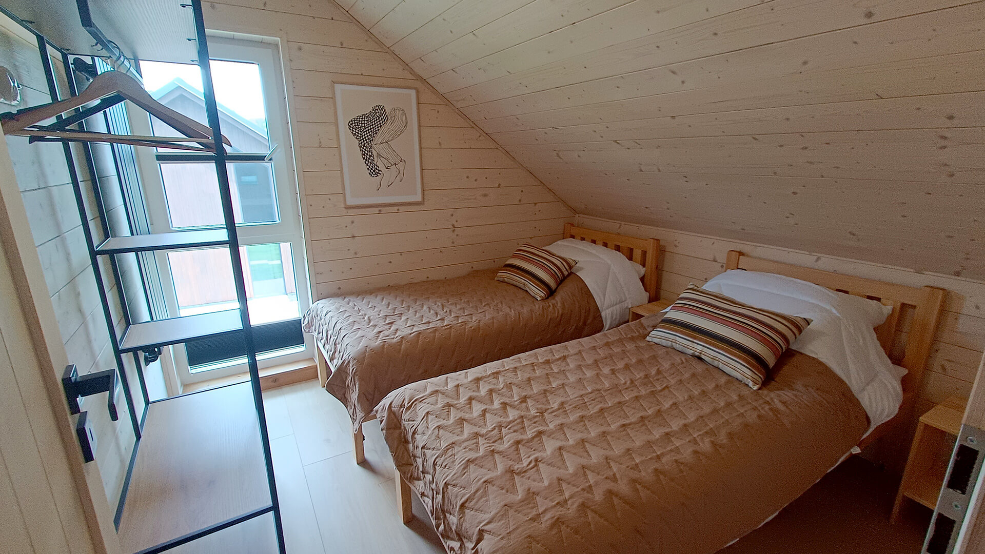 • sypialnia #2 (dwa łóżka 90/200 z możliwością łączenia w jedno, regał z półkami i wieszakami)